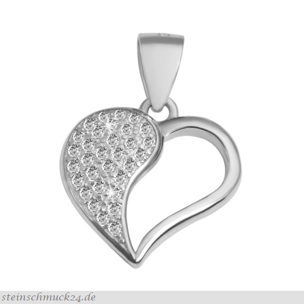 SIZIR039-21497ASI / Anhänger (925er Sterlingsilber rhodiniert), Form (Herz), Steine (Zirkonia neutral), Größe (16 mm breit, 22 mm lang) / 39.- €uro (Preis ohne Kette)