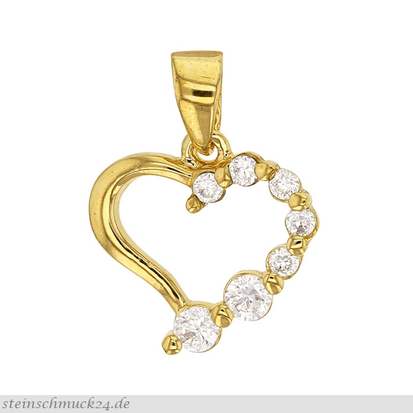 VGZIR025-22396ASI / Anhänger (925er Sterlingsilber vergoldet, poliert), Form (Herz), Steine (Zirkonia neutral), Größe (13 mm breit, 18 mm lang) / 25.- €uro (Preis ohne Kette)