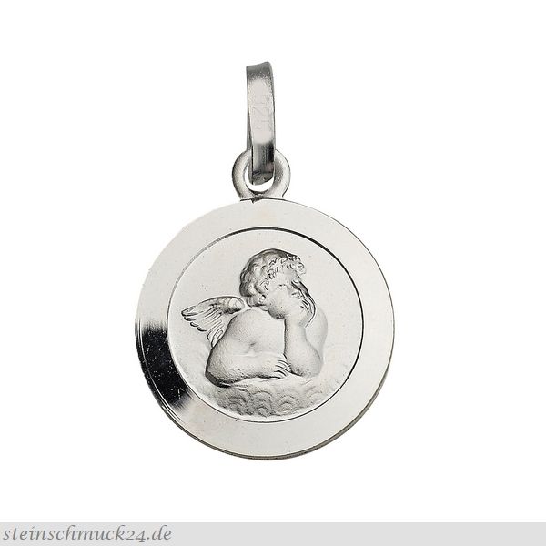 SILBE036-22993ASI / Anhänger (925er Sterlingsilber matt-poliert), Form (Scheibe, Schutzengel), Größe (12 mm breit, 18 mm lang) / 36.- €uro